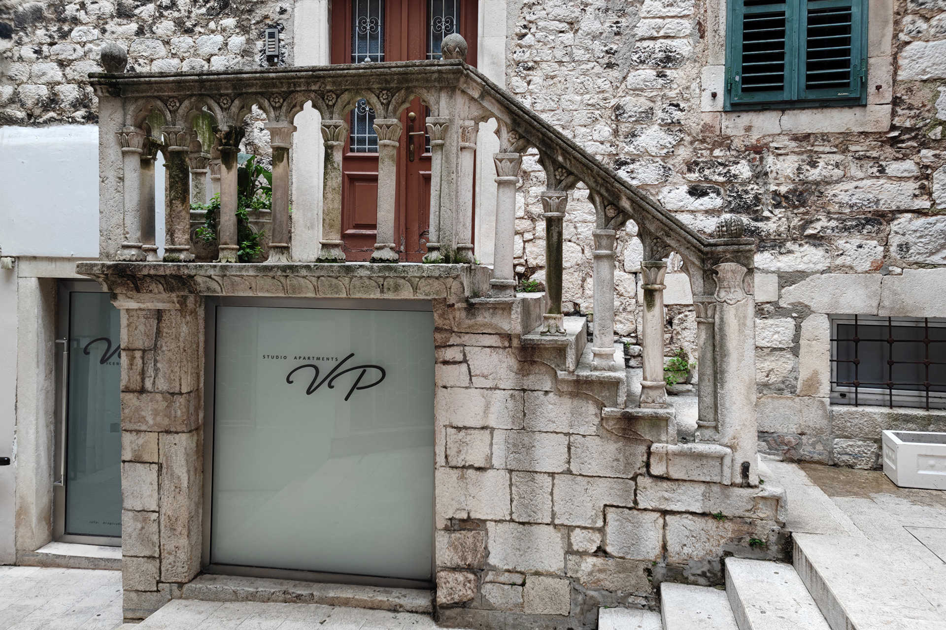 Kameno stubište je očišćeno, prskanjem i četkanjem uklonjene su biološke naslage sa kamena. Kameno stubište je zaklonjeno od utjecaja sunca i podložno intenzivnom obraštaju mikroorganizama na kamenoj površini. Mikroorganizmi nastanjeni na kamenu svojim izlučevinama razaraju kamenu površinu te ih je potrebno ukloniti.
