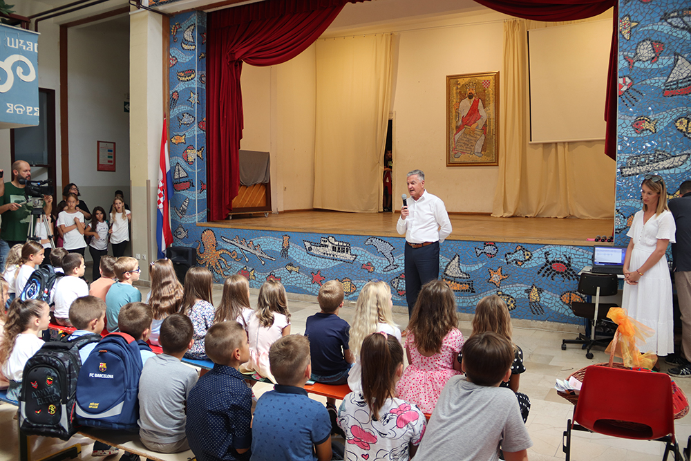 Povodom početka nove školske i nastavne godine 2022./2023. te polaska učenika prvih razreda u osnovne škole, gradonačelnik Željko Burić i zamjenik gradonačelnika Danijel Mileta sa suradnicima obišli su danas OŠ Petra Krešimira IV. u Šibeniku.Na prigodnoj svečanosti upriličenoj u prostorima škole gradonačelnik Burić poželio je djeci uspješan rad i napredak u stjecanju novih znanja.