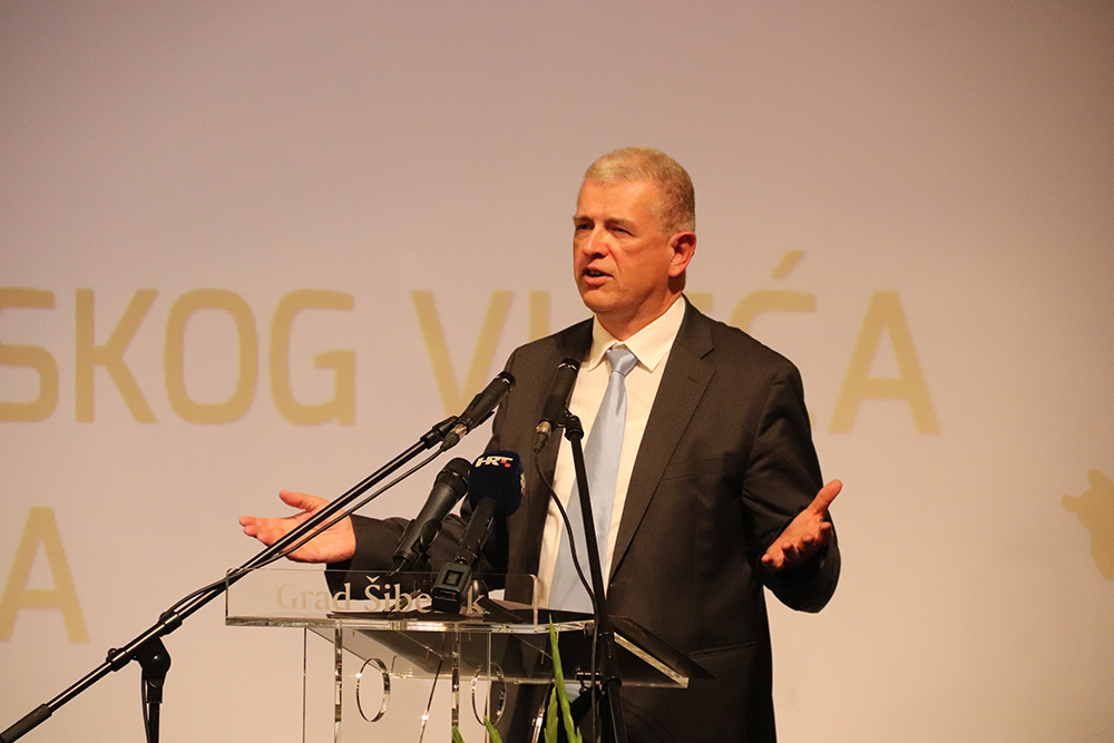 Gostima i uzvanicima među kojima su bili saborska zastupnica Branka Juričev Martinčev, zamjenica župana Šibensko-kninske županije Iris Ukić Kotarac, gradonačelnici susjednih i prijateljskih gradova i općina, predstavnici javnih ustanova, PU šibensko-kninske, vjerskih zajednica, udruga, gradskih tvrtki i ustanova, ravnatelji škola i predškolskih ustanova te mnogi drugi, prigodno se obratio gradonačelnik Šibenika Željko Burić.