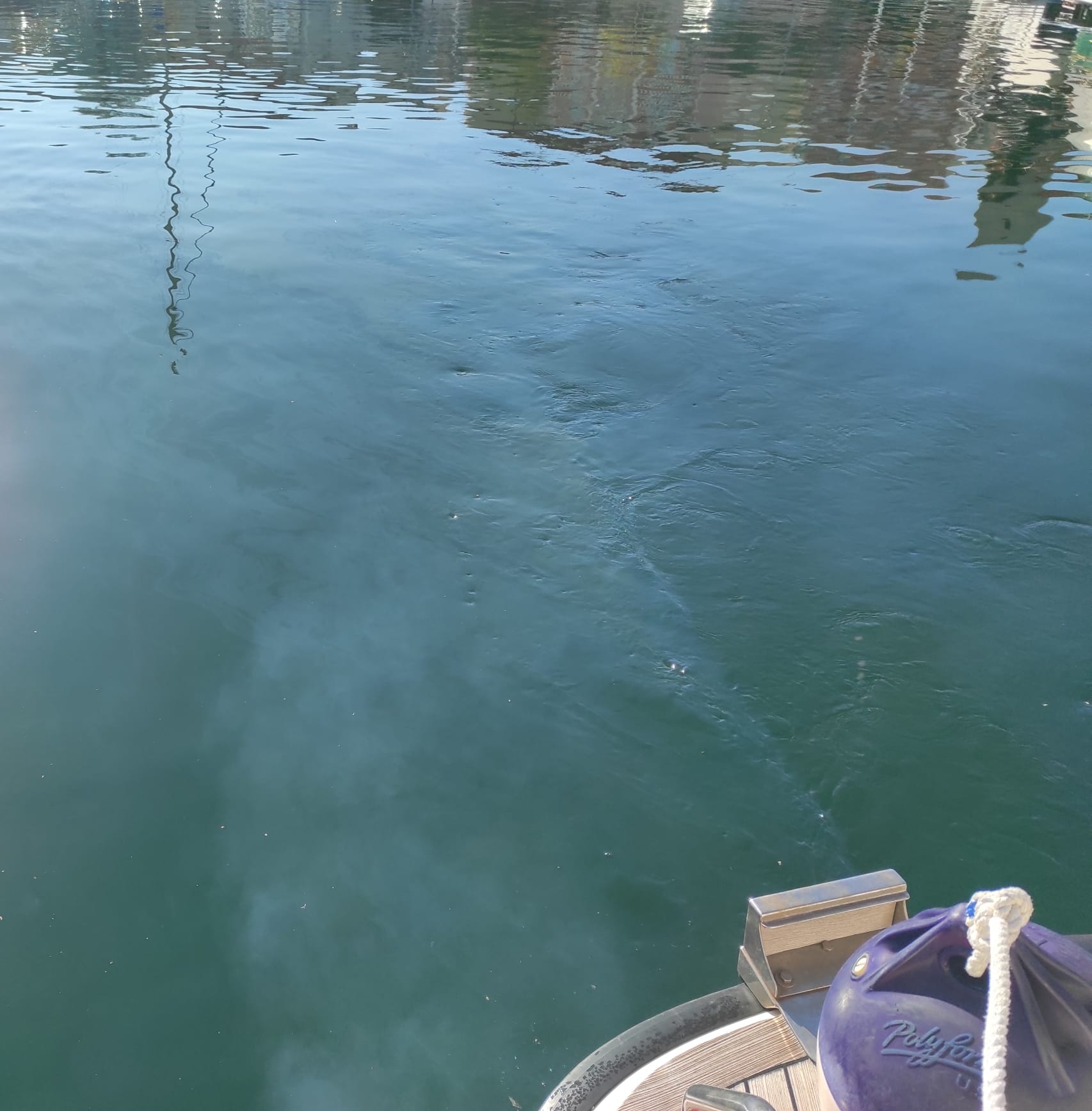 Masne mrlje i bjelkasta tvar pojavile su se jutros u moru na izlazu iz komunalne luke Vrnaža, što se vidi na našim fotografijama. Očevici kažu da im se čini kao da je netko ispustio sadržaj brodskog tanka.
