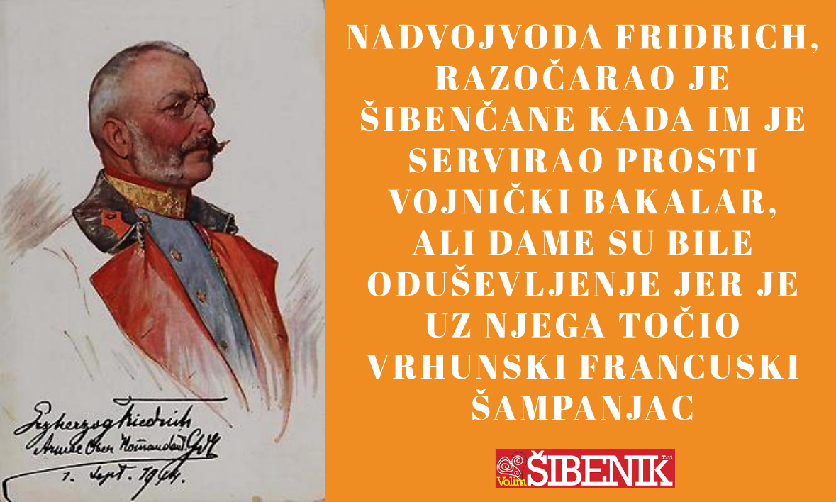 Gastro baština: Nadvojvoda Fridrich, najbogatiji Habsburg razočarao je 1914. godine Šibenčane kojima je na svojoj velebnoj gozbi umjesto očekivanih biranih delicija servirao prosti vojnički bakalar, ali šibenske dame bile su oduševljenje kada im je uz vojničko varivo od bakalar poslužio pravi francuski šampanjac