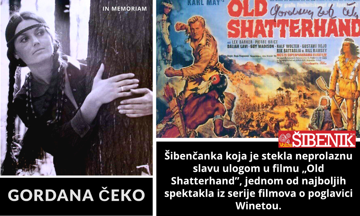 Sjećanje: Vijest da je umrla Gordana Čeko Zeitz i da je tiho sahranjena na groblju Gospe od Zdravlja u rodnoj Dubravi, glasno je odjeknula širom svijeta i izazvala lavinu izraza sućuti i simpatija za tu Šibenčanku koja je stekla neprolaznu svjetsku slavu malom, ali dovoljno dojmljivom ulogom u kultnom filmu „Old Shatterhand”, jednom od najboljih i najspektakularnijem iz serije filmova o indijanskom poglavici Winetou da ostane zauvijek zapamćena i voljena.