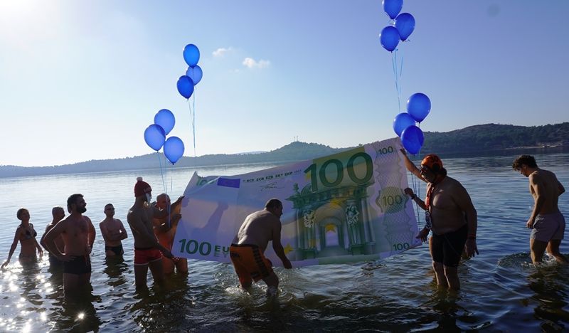 Novogodišnje kupanje organizirali su Turistička zajednica Grada Šibenika i Jedriličarskog kluba „Val”, a najveća atrakcija bilo je slanje kune u nebo i uplovljavanje odnosno uplivavanje eura u Šibenik, zgodna i duhovita dosjetka šibenskog oproštaja s kunom i dobrodošlice euru.