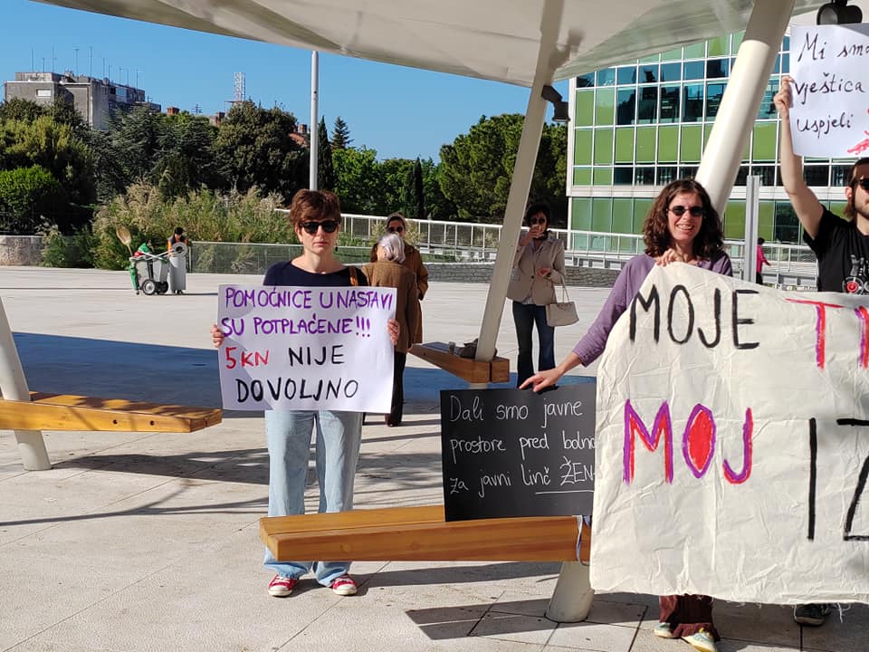 Nosili su parole različitog sadržaja od primjerice “Moje tijelo – moj izbor” do “Mi smo unuke vještica koje niste uspjeli spaliti” ili “ Asistenti u nastavi su potplaćeni”.