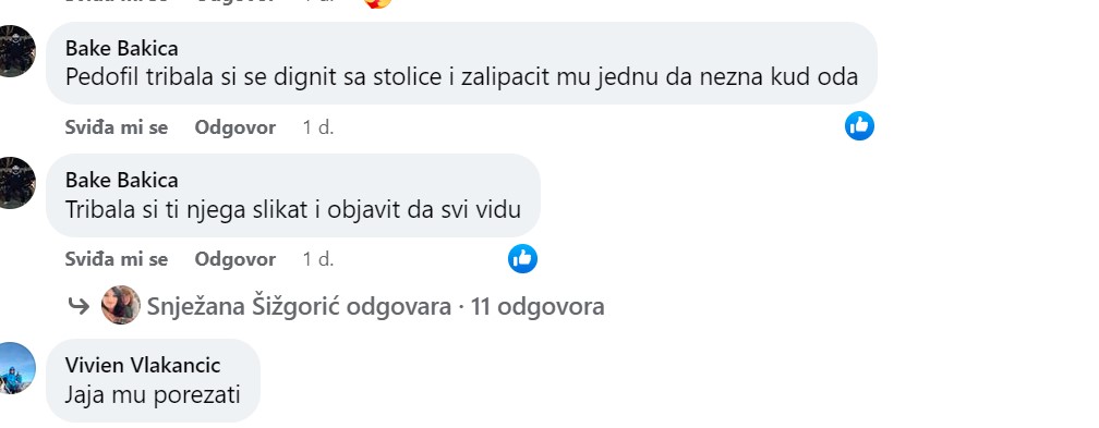 Nakon toga je uslijedila salva osuda na Facebooku. Osvještenost građana i njihova poduzetnost u pogledu razotkrivanja pedofila je itekako potrebna, ali ne i objava fotografije dok se ne potvrdi da je zaista riječ o takvim osobama jer to može izazvati neosnovane hajke protiv nedužnih ljudi.