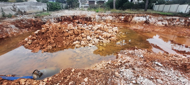 Što se gradi ne znamo jer je ploča s podatcima koja je obavezna za sve investitore okrenuta prema zemljištu, a ne prema vani da se može pročitati. U tijeku je iskop temelja, a u njega stalno nadire more koje radnici ispumpavaju u more na plaži.