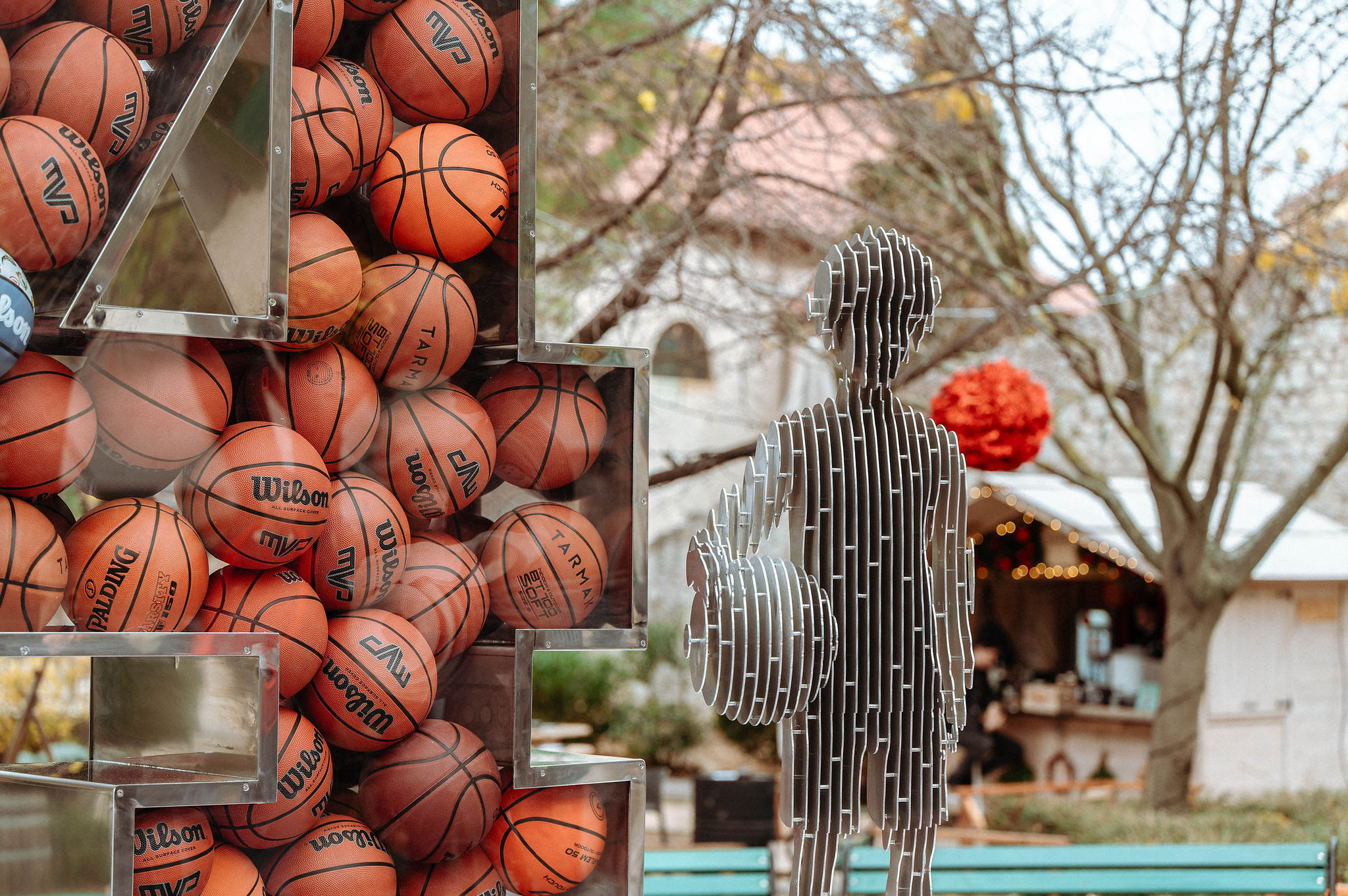 Spoj umjetnosti i tehnologije, stilizirani kip dječaka s loptom, velika staklena četvorka ispunjena 'Wilsonima' i podnožje puno citata- to je instalacija 'Dvorana, lopta, stolice' koja je svečano otkrivenoj danas u šibenskom Perivoju Roberta Visianija u čast prerano preminulog košarkaškog velikana Dražena Petrovića. Postavljena je , kao i sve prethodne, u sklopu šibenske Adventure.