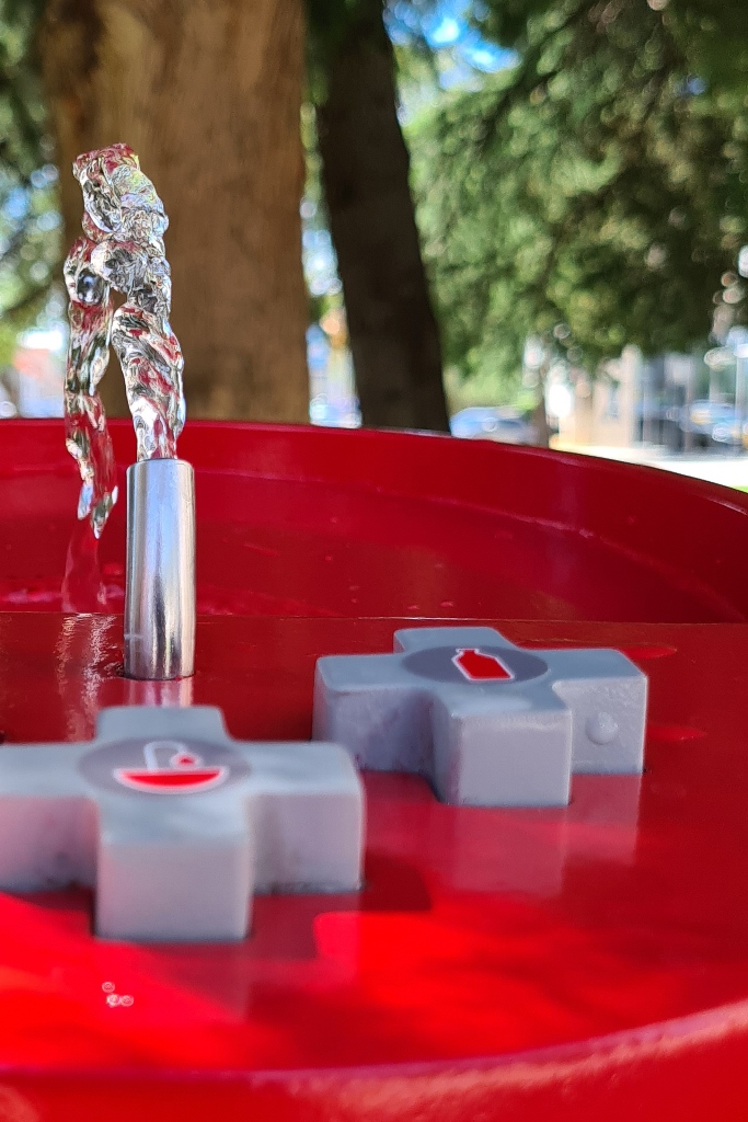 „Vizualno atraktivna forma skriva solidnu čeličnu konstrukciju industrijski proizvedenih gotovih cijevi različitih profila. Lagano zakrivljena forma i blage linije koje se dobivaju spajanjem zavarivanjem i vijcima podilaze vodi kao glavnom elementu. Trodimenzionalni objekt česme minimalističkog je oblikovanja na prvi pogled, dok dubljom analizom otkrivamo duboko promišljeni kreativni rad.Česma ima tri načina za pijenje/punjenje vode, te zadovoljava najviše higijenske standarde. Visoko je ekološki učinkovit proizvod, a u vizuri gradskih ulica gotovo neutralan. Isti visoki standardi higijene primjenjuje se i za kućne ljubimce, dizajnirajući posebni dovod svježe i čiste vode samo za njih”, doznajemo od dizajnera Ante Filipovića Grčića.