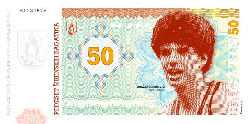 I Šibenik ima novčanicu s likom Dražena Petrovića – 50 šibenskih bagatina. Izdana je 2013. godine u sklopu projekta Šibenski Takuin.