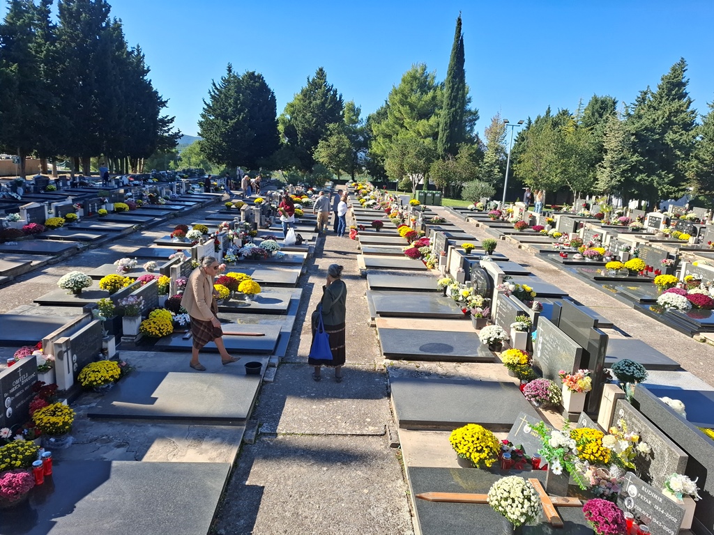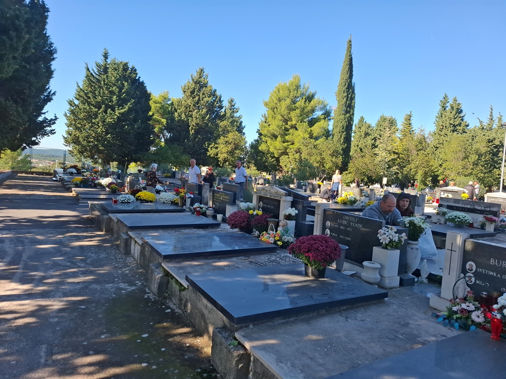 Gužva je od jutros na gradskom grobluu Kvanj na kojem se stvaraju kolone automobila registracijskih oznaka iz mnogih gradova Hrvatske, ali i inozemstva jer brojni građani posjećju posljednja počivališta svojih najmilijih. Na Kvanju je služena i koncelebrirana sveta misa koju je predvodio šibenski biskup Tomislav Rogić.