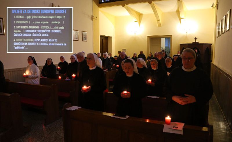 Redovnice i redovnike pozdravio je šibenski biskup Tomislav Rogić, a duhovni nagovor „Akcija i kontemplacija. Odijeliti bitno od nebitnog“ održao je provincijalni ministar Franjevačke provincije sv. Jeronima u Dalmaciji i Istri fra Tomislav Šanko. Naglasio je kako svaka osoba posvećenog života treba pokušati odgovoriti na Gospodinove čežnje: mora se odazvati na Isusovu molitvu, mora se susresti s onim koji ih obnavlja, znati prepoznati svoje umore kako bi ih mogao predati Gospodinu i dobiti ih natrag preobražene te mora naći svoj mir i spokoj kako bi to mogla drugom darivati, identitet redovnika nije u onomu što radi nego u onomu što jest u odnosu na Isusa te da se stave u položaj učenika i uče od Isusa.