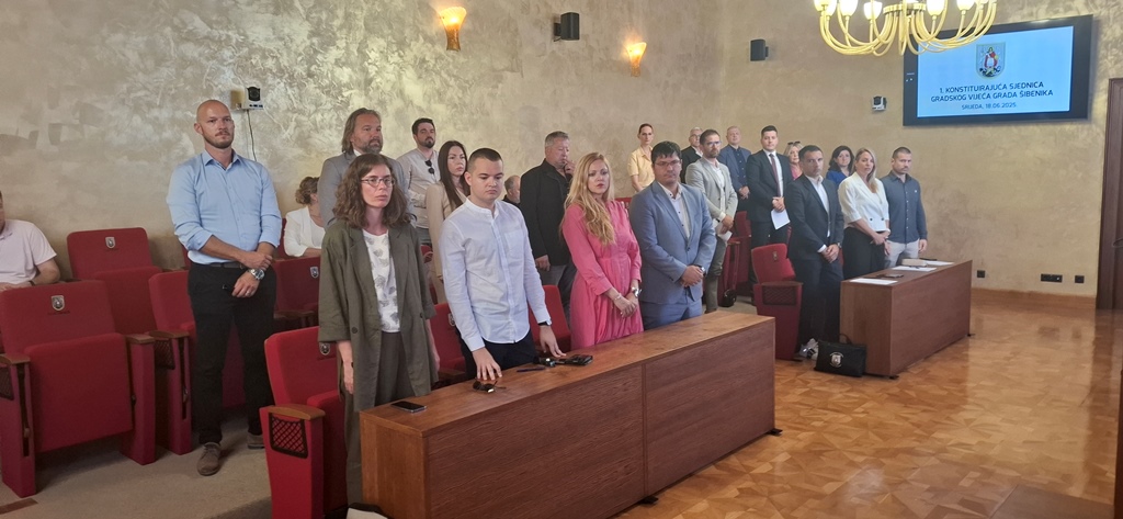 Polaganjem prisege i izborom predsjednika I dva dopredsjenika danas je u Gradskoj vijećnici u Šibeniku konstituirano Gradsko vijeće u kojem HDZ s partnerima, DP -om HDS -om ima aposlutnu većinu.Za predsjednika je ponovno izabran dr.sc. Dragan Zlatović, a za zamjenike Dario Kulušić iz HDZ-a i Ivan Slavica iz SDP-a. Novopečeni vijećnik s NL Stipe Petrina Zoran Kljajić jedini je bio protiv Zlatovićevog izbora.