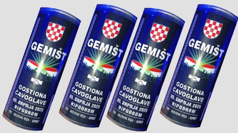 GEMIŠT ČAVOGLAVE / „Gemišt Čavoglave”, piće od vina i mineralne vode na internetu se trži po euro i 49 centi. Prvo polje na grbu otisnutom na limenki je – crveno.