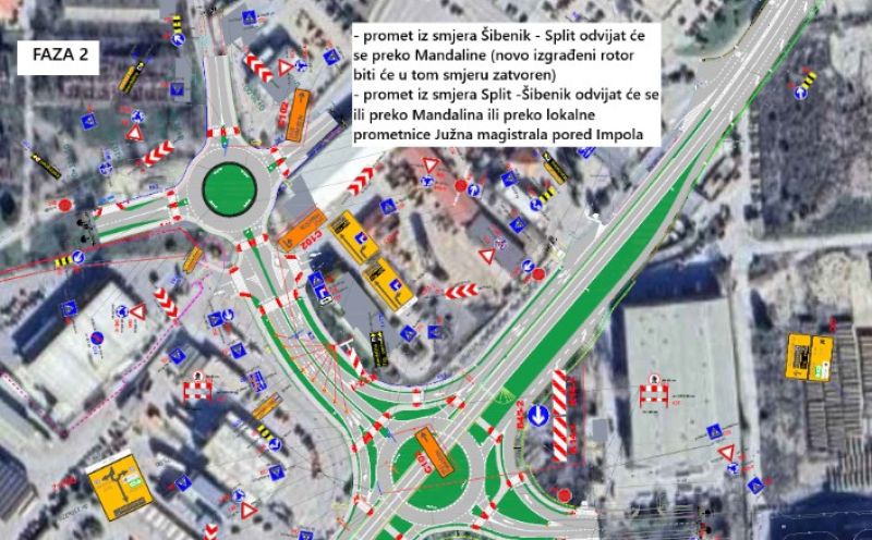 Iz pravca Splita prema Šibeniku prometovat će se nerazvrstanom prometnicom industrijske zone Južnom magistralom pored Impola te na novoizgrađeni rotor prema Šibeniku ili preko Podsolarskog i Mandaline.