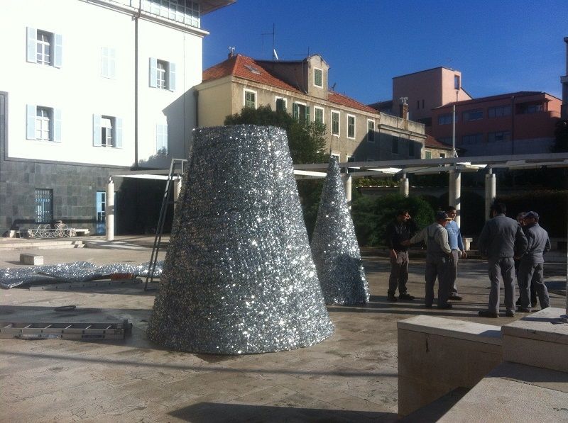 Božićno ukrašavanje Šibenika uskoro će dobiti svoju krunu. Dobro, možda ne doslovno krunu ali sigurni najveći bor okićen u gradu.
