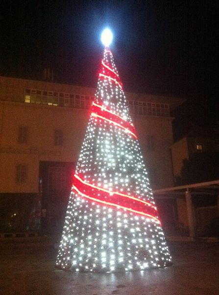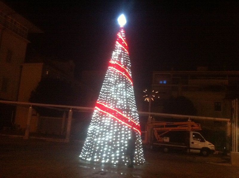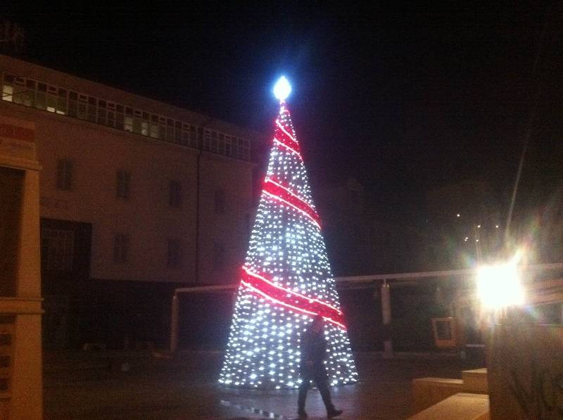 Jučer ujutro su ga radnici postavljali a sinoć je već svijetlio punim sjajem. Visok je ovako otprilike 12 metara. Nemojte nas držati za milimetar. Tu negdje.