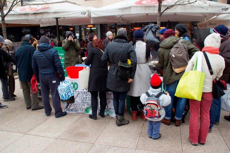 "Hrana, a ne oružje" je aktivistički, anarho-kolektiv koji se bavi dijeljenjem besplatne veganske hrane na javnim površinama u centru grada. Sakupljanjem i recikliranjem odbačene hrane i dijeljenjem zdravih veganskih obroka želi se ukazati na krizu vrijednosti i nepravilnu raspodjelu resursa kao posljedicu pogrešnih politika država i vladi koje su vođene iskrivljenim prioritetima.