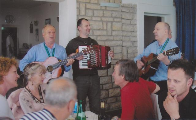 Stari prijatelji su u Šibeniku rijetko javno nastupali. Pamti se da su 1985. godine nastupili na Gorici u okviru noćnog programa dječjeg festivala te 1986. godine na liječničkoj zabavi, a godinu dana kasnije u Skradinu kao gosti Smotre dalmatinskih klapa.
