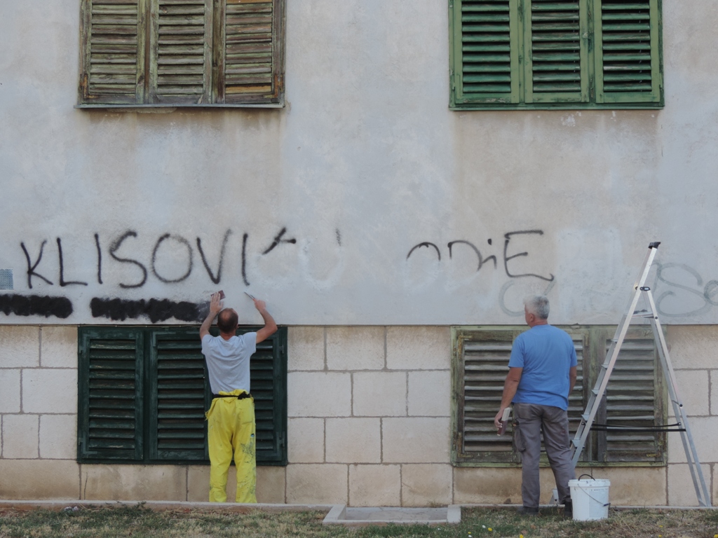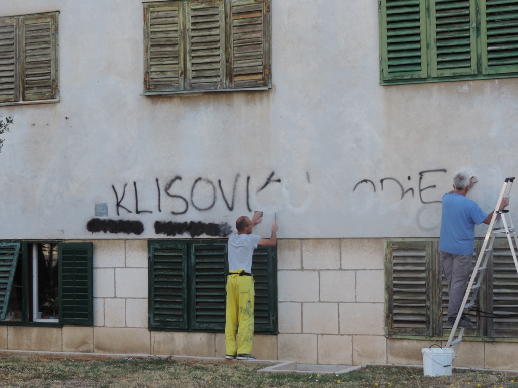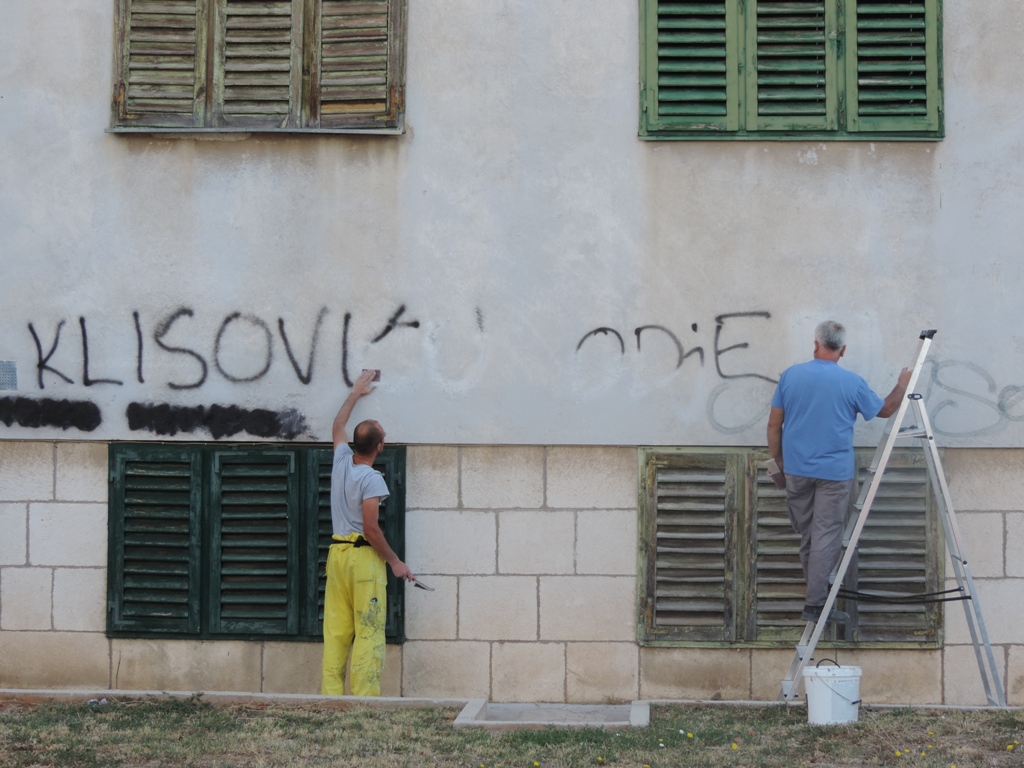 Vandali u Šibeniku osvajaju nove prostore za pisanje uvredljivih grafita. Tako su na fasadi stambene kuće na Baldekinu, u blizini Spomenika braniteljima iz Domovinskog rata ostavili bezobraznu poruku treneru Klisoviću koju su radnici Stine, koji za to imaju koncesiju, jutros obrisali. Rezultat njihove gluposti i bezobrazluka je nepotrebni trošak u gradskoj blagajni.