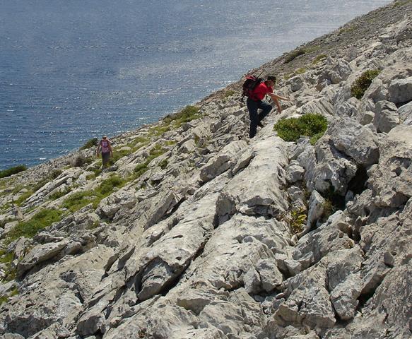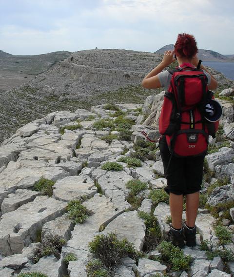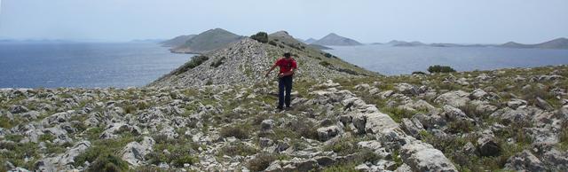 Za Kravljačicu su me vezale mnoge uspomene. Tu sam boravio nekoliko puta po mjesec dana dok su trajala arheološkim iskapanjima oko crkve Gospe od Tarca. Gledam svoje prijatelje rasute uokolo kao škoji i vidim da su zadovoljni ovim izletom. Čujem da se nitko ne buni što nismo došli do Proverse. Očito je svima jasno da smo malo podcijenili otok Kornat. Na početku se činilo da je proći ga uzduž tek malo napornija šetnja, ali nije to tako jednostavno. Hodati po škrapama, preskakati sa stijene na stijenu,oštre poput noževa, traži i volje i snage. Kornat ni u jednom trenutku ne dopušta pješaku da se opusti. Stalno morate biti koncentrirani i paziti gdje stajete. Dobro je, nitko se nije ozlijedio. Na takvom terenu ne smije se ni posrnuti, a kamoli pasti, jer tko padne bit će u najmanju ruku dobro izudaran i gadno izgreban.