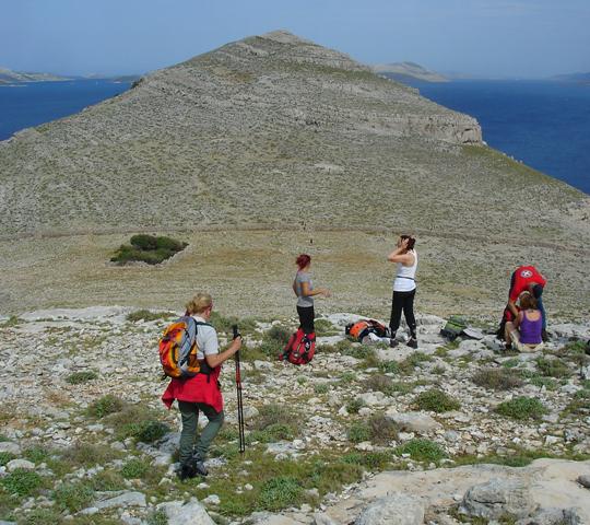 Već smo daleko za sobom ostavili uvalu Koromašnju, a nisu prošla ni puna četiri sata otkako smo se u cik zore s mula ispred hotela Punte u Vodicama otisnuli prema Murterskom moru i Kornatima. Naš je brod bio popunjen gotovo do posljednjeg mjesta iako smo mislili da neće biti dovoljno zainteresiranih za planinarsku šetnju duž otoka Kornata. Ali dobrih pola sata prije isplovljavanja pristanište je bilo ispunjeno veselim mnoštvom i šarenim naprtnjačama. Izgledalo je kao da se cijeli HPK Sv.Mihovil odlučio poći u pohod na otok Kornat, najduži i najveći među otocima šibenskog arhipelaga. Dug je dvadeset pet kilometra i dvjesto metara, a obalna mu je crta duga više od šezdeset šest kilometara. Točno u šest sati trideset i šest planinarki i planinara isplovilo je iz Vodica željno iščekujući zagrljaj čudesnih Kornata. Vrijeme se pogoršalo. Sve veći valovi u Murterskom moru valjali su naša dva broda poput orahovih ljusaka, ali sve je izgledalo veselo i zabavno poput vožnje u luna-parku. Emil, vlasnik brodica, glavni kapetan i naš klupski kolega, sigurno nas je vodio prema cilju. Zlatne zrake jutarnjeg sunca što je izvirilo nad najvišim izdancima dalekog kopna obasjale su nam lica toplom svjetlošću, duše napunila mirom, a srca radošću.