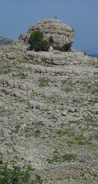 Odmah nakon Koromašnje prešli smo Tanku, a tri i pol kilometra ispred i Debelu Prisligu. Na tim suženjima, tankim poput struka vitke žene, Kornat je širok samo stotinjak metara. Kamenite padine uz koje smo se penjali prema modrom nebu, pa se niz njih spuštali prema isto tako modrom moru, izgledaju poput mjesečeva pejzaža. Na njima stotinama metara uokolo nigdje nema ni jedne travke. Ali zato je sladak predah pod krošnjom samotnog drveta koje je, tko zna kako, preživjelo na ovoj bezvodnoj goleti koju sa svih strana šibaju okrutni vjetrovi. Gutljaj vode tako svete ovdje gdje je nema ni za lijek, komad kruha, kriška naranče... i već idemo dalje. Između dva brijega ispred nas ukazala nam se čudna stijena. Ogroman, gotovo okrugao, kamen kao da je pao s neba i svom snagom se zabio u vrh uskog uzvišenja. Izgleda kao neki golem oltar pa nije čudno što je netko na njemu uspravio velik križ. Ima smisla ovdje zastati i zaviriti u vlastitu dušu. Cijeli krajolik oko stijene s križem djeluje mistično pa se neki od sudionika pohoda na Kornat ustručavaju popeti na nju. Produžuju prema Velom vrhu pod kojim su Vrulje, najveće kornatsko naselje. Potpuno smo izgubili osjećaj da se nalazimo na otoku. Čak i kada smo se počeli spuštati prema Vrulji, činilo se kao da smo nakon dalekog puta tamo iz dubina kopna izbili na obalu mora.