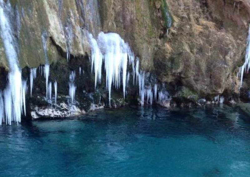 Knin na sjeveru Šibensko - kninske županije i dalje bilježi temperaturne minuse. U 15 sati izmjereno je -5,7 Celzijevih stupnjeva što je dovelo do smrzavanja brojnih mokrih površina. Posebno lijep prizor je onaj na obližnjem Krčiću, slapu, mjestu gdje izvire krška ljepotica Krka.