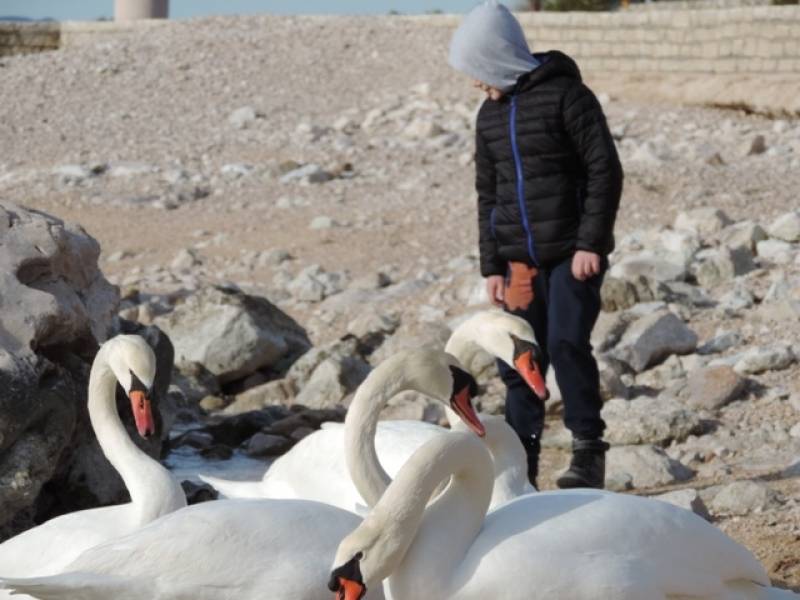 Šetače rivom na Brodarici oduševila je danas skupina labudova koja je uživala u plićaku na jednoj od plaža i doslovno im „jela iz ruke“ koliko su pripitomljeni. Djeca su ih doživjeli kao kućne ljubimce,a bezobzira koliko su već na našem području postali česti uvijek iznenade svojom elegancijom i ljepotom.