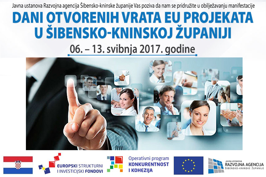 Najznačajniji europski projekti koji su ostvareni u Šibensko – kninskoj županiji bit će građanima predstavljeni sljedećeg tjedna, od 6. do 13. svibnja, u sklopu manifestacije „Dani otvorenih vrata EU projekata“ koju na inicijativu Ministarstva regionalnog razvoja i fondova Europske unije koordinira Razvojna agencija Šibensko-kninske županije, u svojstvu regionalnog koordinatora, a organizatori su gradske i županijska uprava.